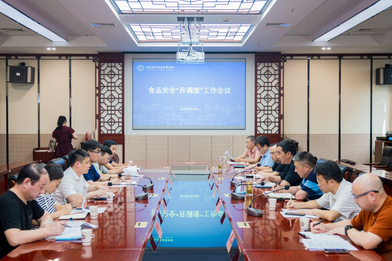 为深入贯彻落实上级部门关于食品安全工作的重要指示精神,严格执行“日管控、周排查、月调度”工作制度,扎实推进校园食品安全各项任务落地见效,9月26日,学校在图文信息中心1203会议室召开食品安全“月调度”工作会议。党委委员、副校长杭斌,党委副书记都樾出席会议,后勤基建处、校区管理办、财务处等相关职能部门分管和负责同志,各食堂经营单位项目负责人、食品安全总监、食品安全员及相关管理人员参加会议。