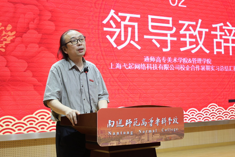 9月24日,南通师范高等专科学校美术学院与管理学院联合举办“产教融合,共创未来——暑期实习汇报总结会”。上海弋起网络科技有限公司代表、学院领导、教师代表及实习学生齐聚报告厅,共同回顾暑期实习成果,展望校企合作新前景。