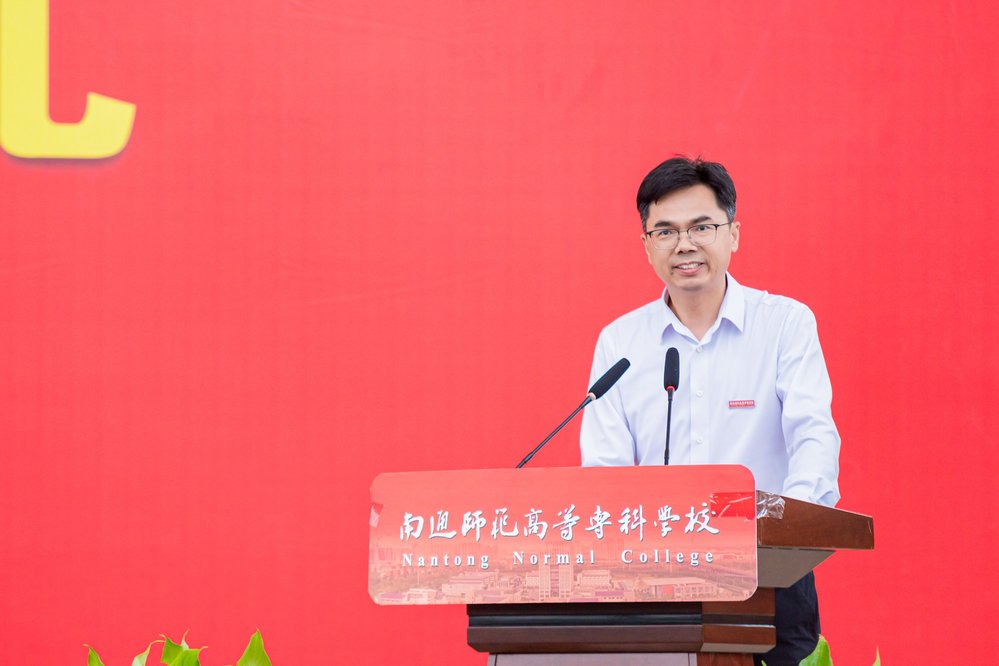 开学典礼上,师生代表与优秀校友相继发言,分享感悟、传递期许。信息智能学院院长夏洪星教授作为教师代表,以《在青春的起点,遇见最美的通师》为题,深情回忆了与学校初遇的美好,描绘了校园如诗如画的景致与深厚的人文底蕴。他追溯学校自张謇先生1902年创办以来的123年辉煌历程,勉励新生既要传承百年师范的教育情怀,也要拥抱科技创新的时代精神,并送给同学们“传承 + 创新 + 坚持 = 无限可能”的“通师方程式”。如皋市人民政府办公室副主任严可文分享了作为校友、新生家长的激动心情。他回顾了母校对其成长的关键影响,希望同学们牢记“坚苦自立 忠实不欺”的校训、继承发扬学校优良传统,矢志报国,苦练本领,在强国复兴道路上展现通师高专学子的模样。