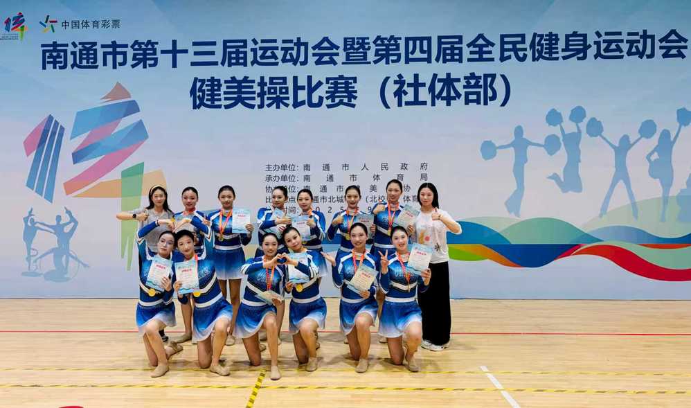 作为南通地区规格高、覆盖广的体育盛会,本次健美操比赛竞争尤为激烈,各参赛队伍均展现出强劲实力。赛场上参赛队员们始终保持饱满的精神状态,以精准有力的动作、流畅连贯的编排惊艳全场。从基础步伐的稳健落地,到高难度托举、跳跃动作的完美呈现,每一个细节都完成得干净利落;队员间配合默契,动作整齐划一,将健美操项目特有的力量感与美感融为一体,不仅征服了现场观众,更赢得了裁判团的高度认可,最终在众多强队中脱颖而出。