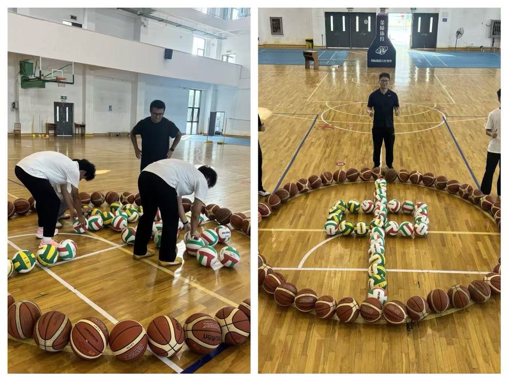 活动伊始,体育馆的场地布置便成为一大亮点。围绕“团圆”与“梦想”的核心主题,篮球场中圈化身为一轮巨型圆月,巧妙运用篮球勾勒出月亮的轮廓,寄托了“月圆人圆”的美好祝愿。圆月中央,更是别出心裁地用足球、排球拼写出“中”“秋”“快”“乐”四字,既展现了体育学院的专业特色,又烘托出浓浓的节日温情。这场传统与现代交融的视觉盛宴,迅速将体育馆装点成一个充满青春活力的佳节舞台。