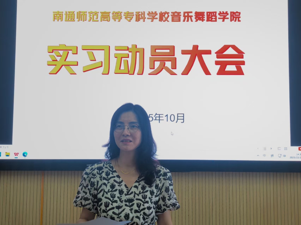 10月11日下午2:00,音乐舞蹈学院于尊素楼一楼阶梯教室举办2025年教育实习动员会。院党总支书记成勇、党总支副书记张露、副院长宋乐、院长助理黄海峰、各实习指导老师和156名实习生齐聚一堂,共同迎接即将到来的教育实习新征程。