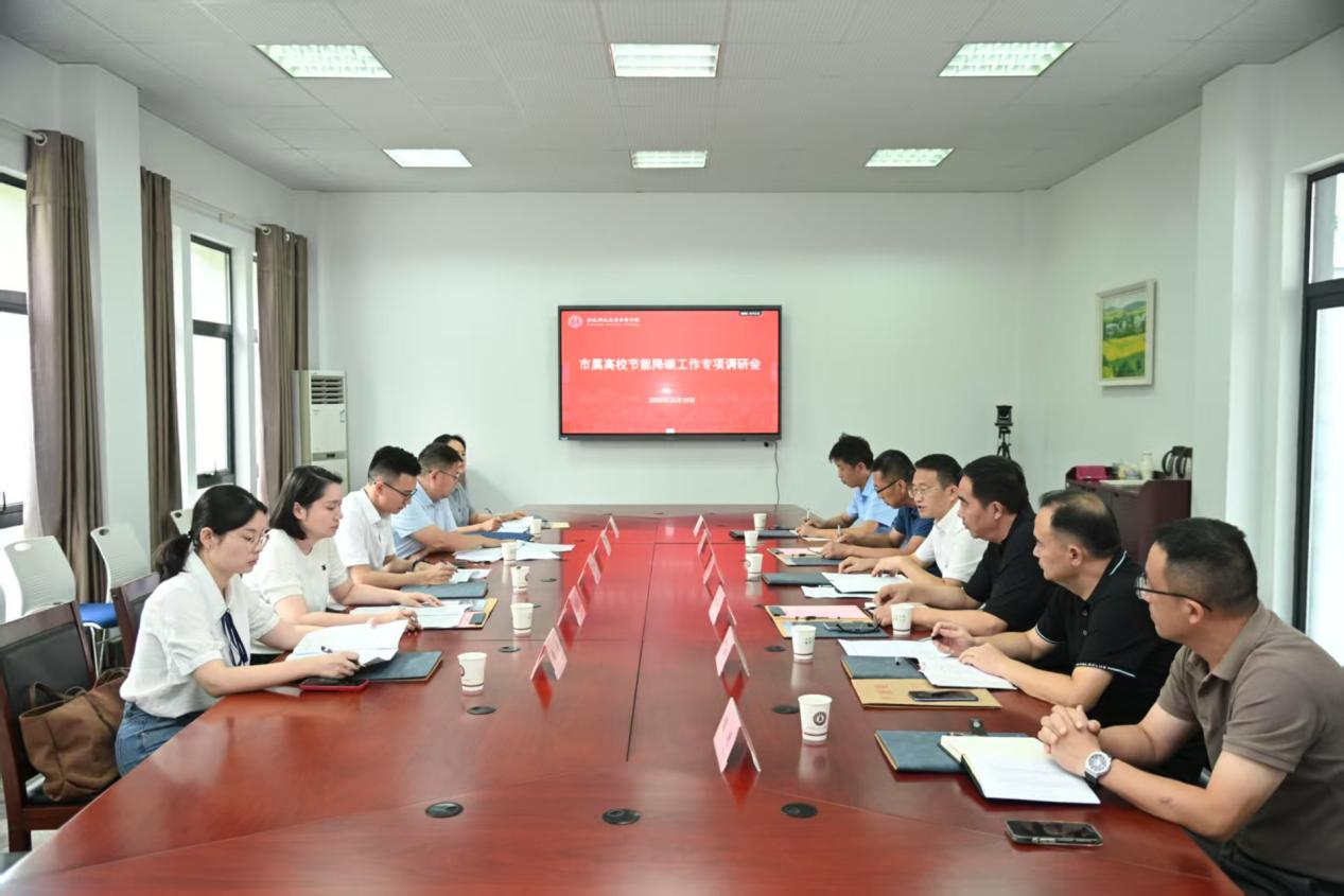都樾对南通市机关事务管理局一行的来访表示欢迎,并从组织领导、制度建设、基础设备、重点用能管理、节水宣传、节能监控、反食品浪费等七个方面汇报了“十四五”以来我校在节能降碳方面所做的工作,对南通市公共机构节能“十五五”规划编制提出了具体建议。