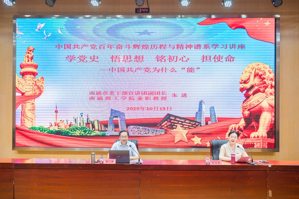 朱进以《学党史、悟思想、铭初心、担使命——中国共产党为什么“能”》为题,从中国共产党为什么能建立新中国、为什么能收拾好国民党留下的烂摊子、为什么始终得到人民的支持、为什么能取得现代化建设的巨大成就等方面,紧扣“中国共产党为什么能”这一核心。通过丰富史料回顾了党在不同历史时期的中流砥柱作用,深入阐释了党的执政地位是历史与人民的必然选择。在传承和弘扬中国共产党精神谱系部分,朱进特别以我校顾新辉老师一家英勇救人的先进事迹为例,生动诠释了共产党人的责任担当与优良家风。学生党员张子悦在分享感悟时表示,见义勇为是内化于心的自觉,党员身份意味着关键时刻必须挺身而出,先进事迹为全体师生树立了鲜活榜样。