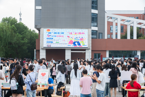 10月15日下午,开发区校区食堂门前人声鼎沸、活力拉满。由校团委主办的2025年社团招新活动在此热烈启动,活动同步覆盖三校区,大学生新媒体中心、校广播站、社团等学生组织齐聚一堂,各展所长,用十足诚意吸引新成员,现场氛围瞬间被点燃。
