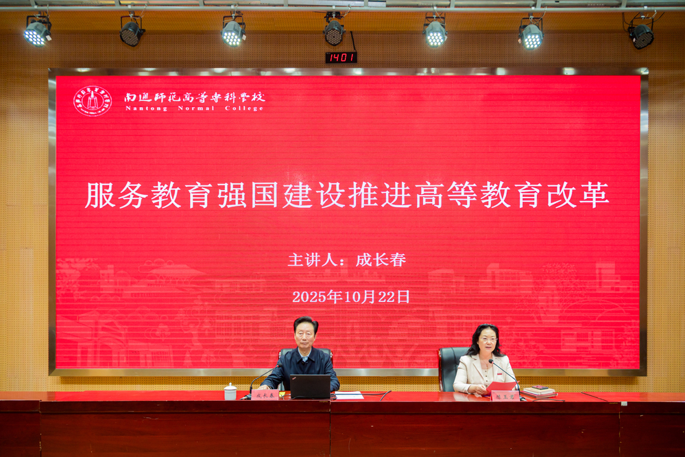 为全面贯彻落实《教育强国建设规划纲要(2024—2035年)》(以下简称《纲要》)精神,精准把握高等教育发展的战略方向,切实提升我校服务教育强国建设的能力,10月22日,南通大学原党委书记、江苏省重点高端智库——江苏长江经济带研究院院长兼首席专家成长春教授应学校邀请作专题报告,讲座由校党委书记陈玉君主持。