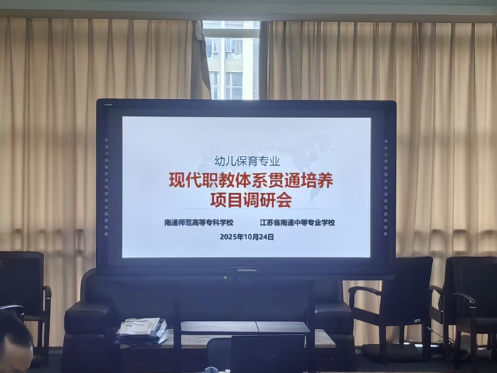 为深入了解现代职教体系贯通培养“3+3”项目的实施进展,持续推进项目高质量落实,10月24日,我校教务处、招生就业处、学前教育第二学院及美术学院相关负责人一行,先后赴南通纵横国际职业技术学校与南通中等专业学校开展实地调研交流。