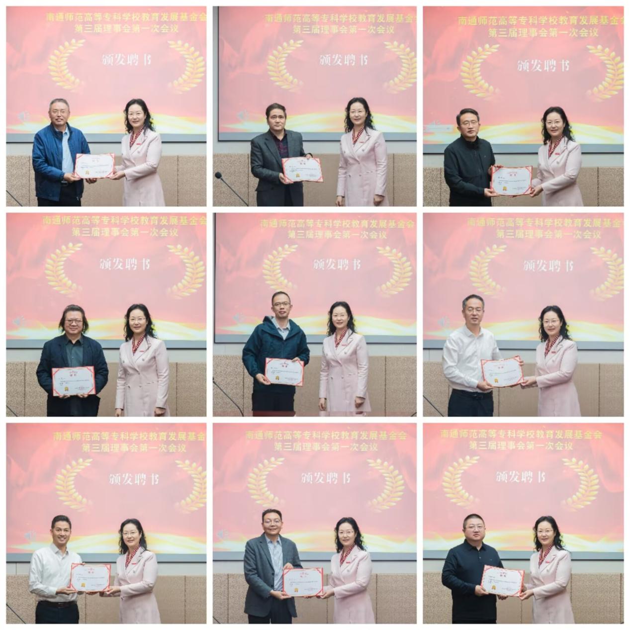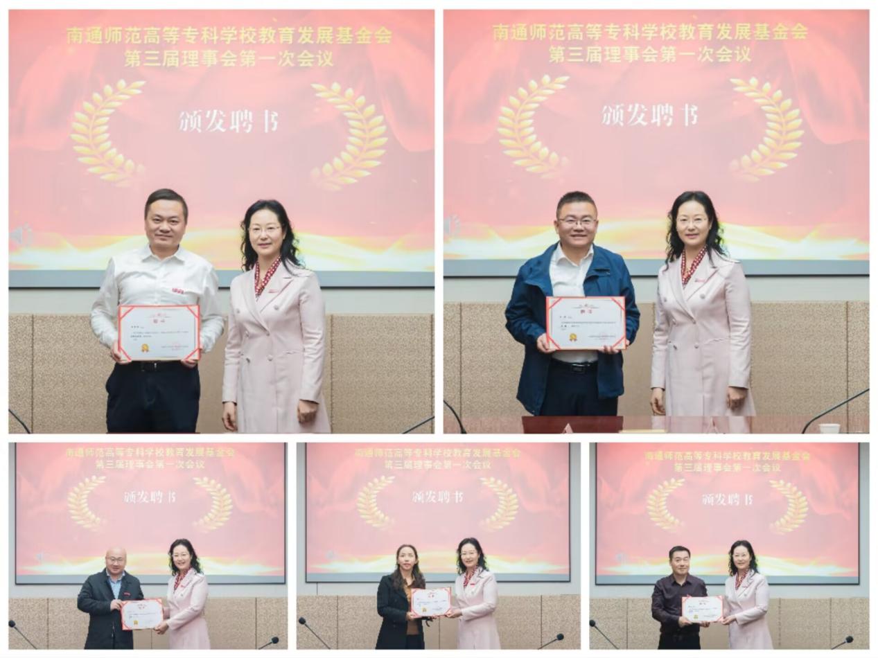 换届大会结束后,基金会第三届理事会召开第一次会议。会议由盛斌主持,学校党委副书记、校长岳峰致辞。会议选举产生了新一届领导班子:陈玉君当选理事长,岳峰、朱月萍、陈森、姜熊烽、郭小平当选副理事长,盛斌当选秘书长。监事会推选王鑫明担任监事会主席。会议聘请张慎欣同志担任名誉理事长,潘健、王志刚、杭斌三位同志担任顾问,潘杨华、杨平兼任副秘书长。陈玉君向新一届理事、监事等颁发聘书。
