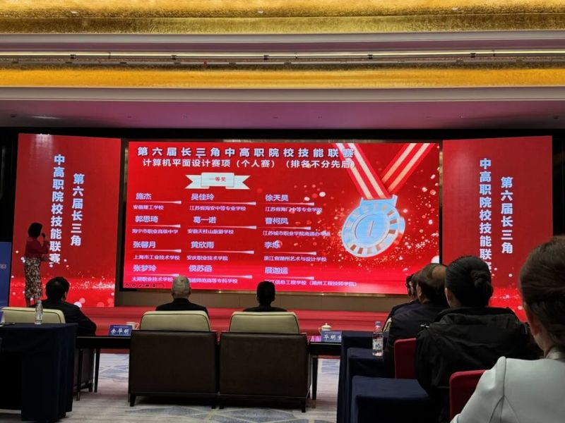 2025年10月26日,第六届长三角中高职院校职业技能联赛在安徽省安庆职业技术学院盛大举行。我校美术学院郁婉婷老师指导的侯苏涵、付紫萱两位同学,凭借出色的专业能力与稳定的现场发挥,在“计算机平面设计”赛项中脱颖而出,分获一等奖与三等奖,为学校赢得荣誉!