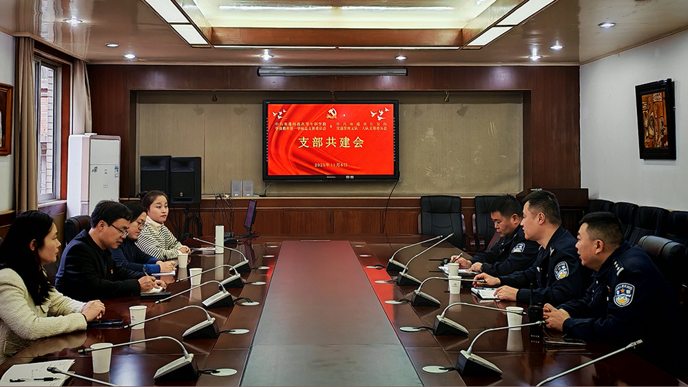 会议伊始,双方分别介绍了各自支部建设的基本情况。学院党总支副书记刘建国从组织架构、党员队伍建设、党建品牌特色等方面分享了学院党建工作的成果与经验,强调了党建引领在立德树人、人才培养中的核心作用。胡洋介绍了一大队党支部在政治建设、纪律作风、服务群众等方面的实践与成效,展现了公安交警队伍“对党忠诚、服务人民”的使命担当。双方一致认为,加强支部共建是推动资源共享、优势互补、协同发展的重要途径。
