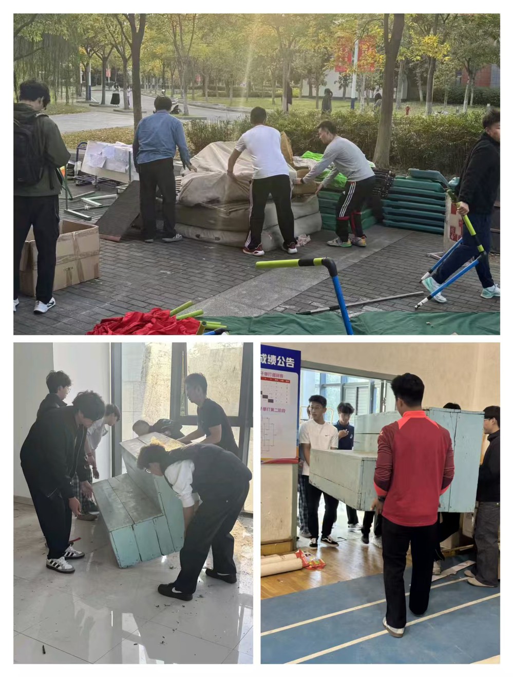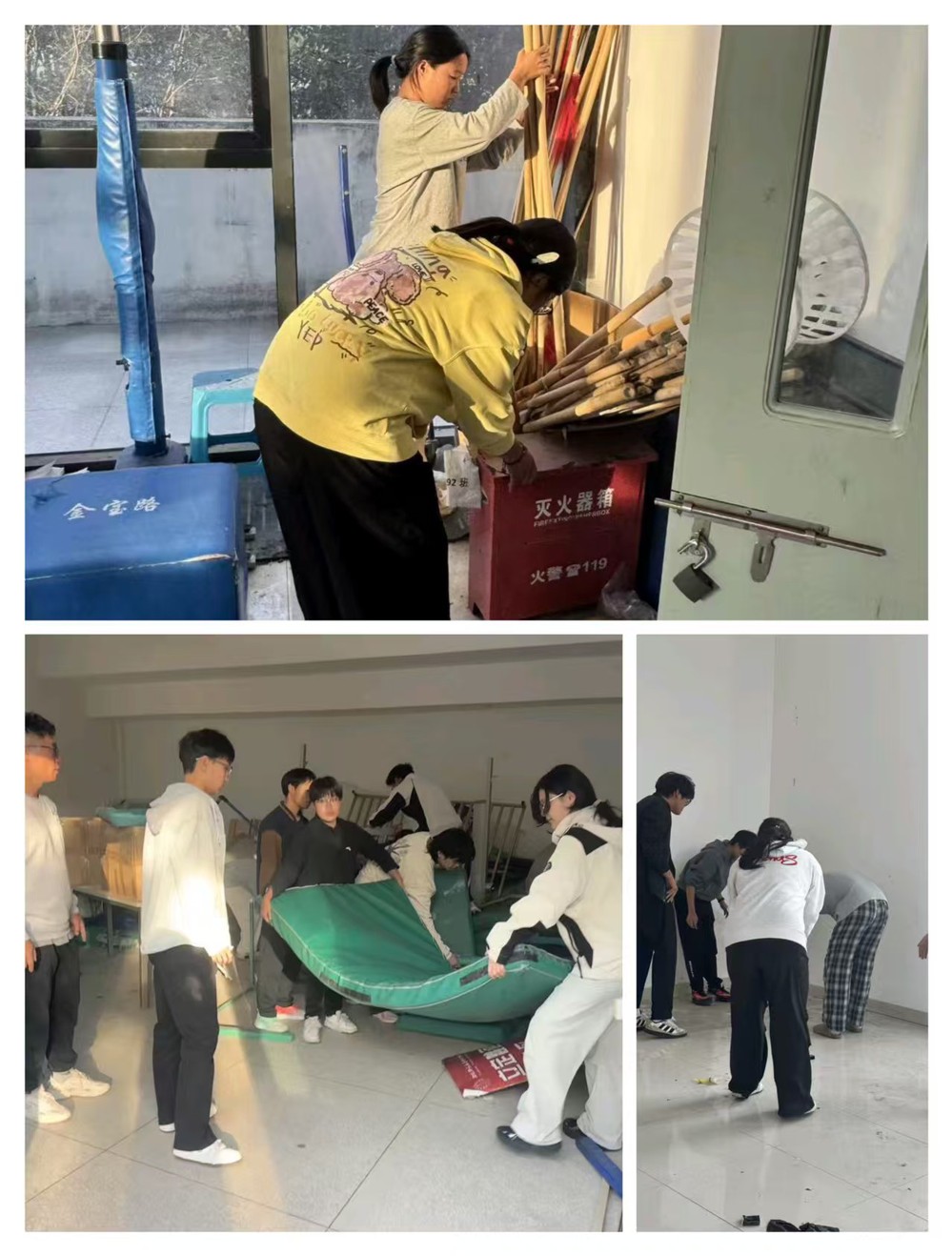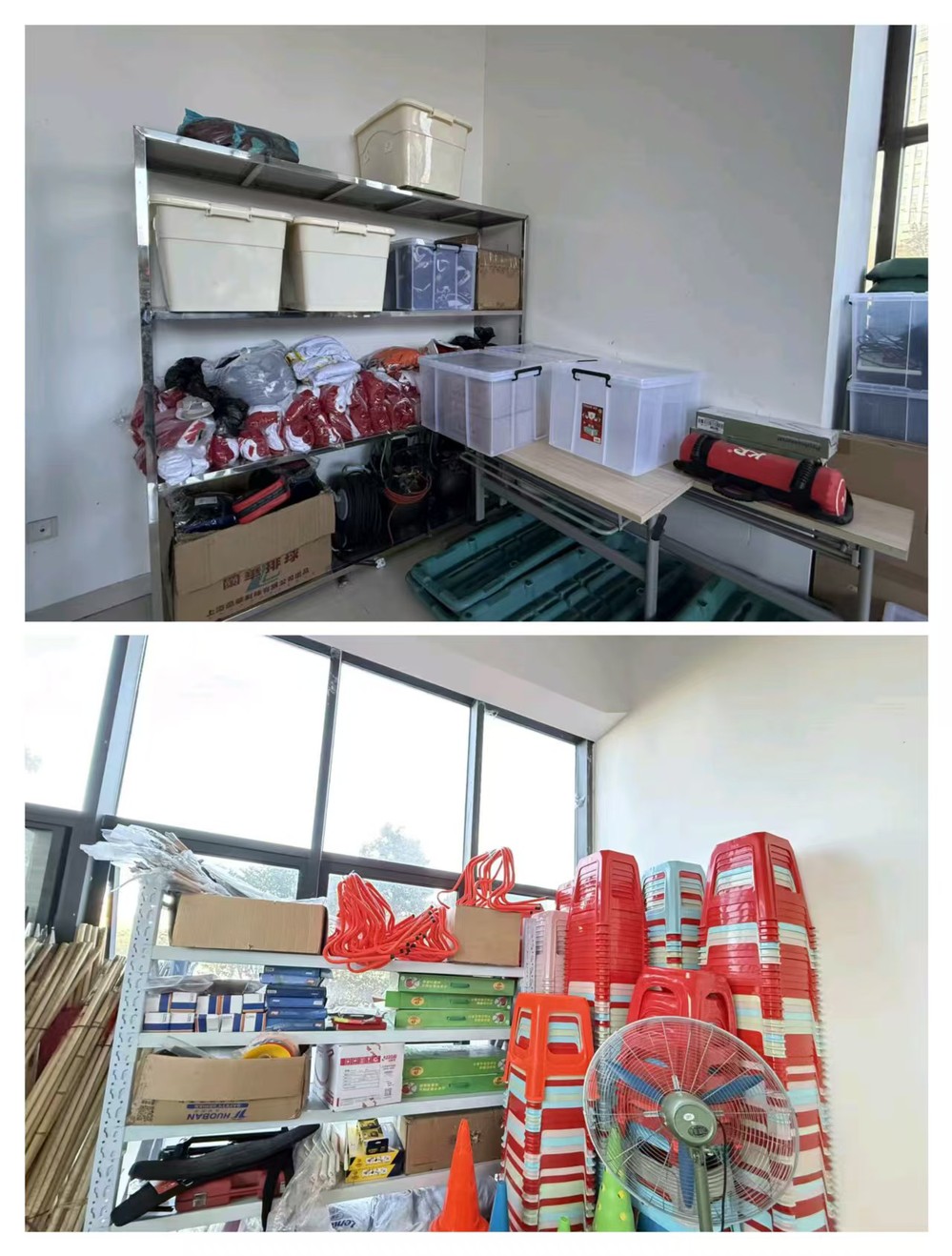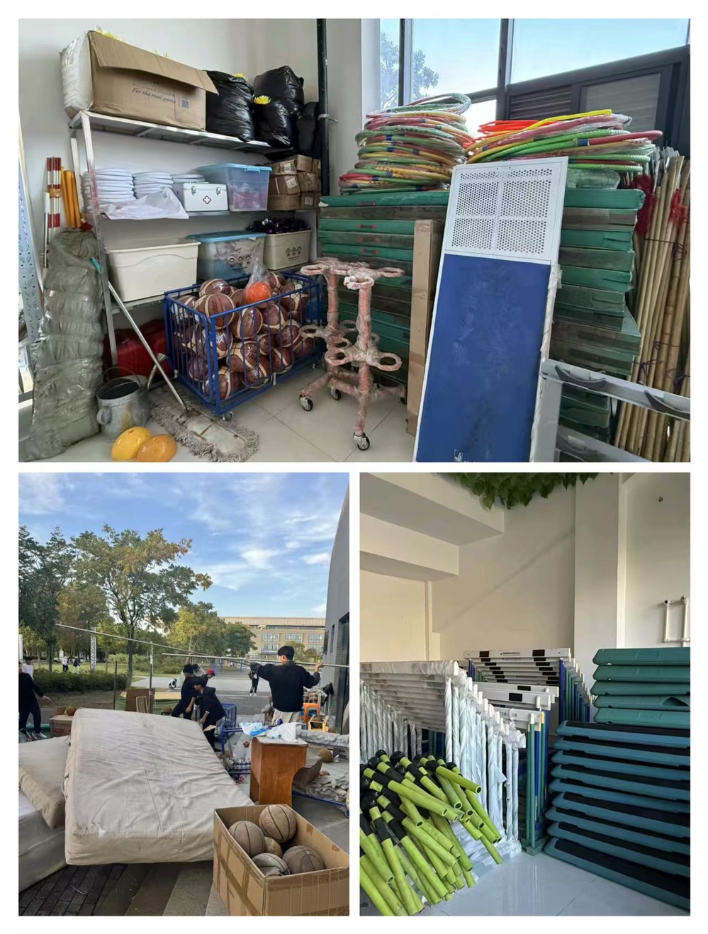 11月6日是“科学规划,规整焕新”的关键阶段。同学们在清理后的空间里,结合器材使用频率和存取便捷性,重新规划布局。党团积极分子勇挑重担,带头搬运重物,全体同学通力合作,完成了器材转移、分类归位、张贴清晰标签以及检查防潮通风设施等一系列工作。经过努力,原本略显杂乱的器材室面貌焕然一新,各类器材摆放井然有序,为后续教学与训练工作提供了有力保障。