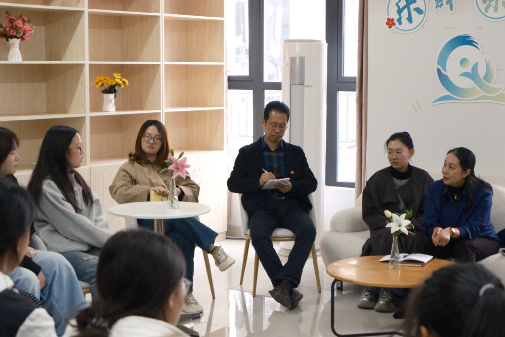 为搭建高效畅通的师生沟通桥梁,精准倾听学生心声、回应成长需求,近日,音乐舞蹈学院在辅导员之家隆重举行“我与党委书记面对面”座谈会。学校党委委员、组织部部长魏荣华,学院党总支书记成勇,专职辅导员钱慧锦与学生代表齐聚一堂,以面对面、心贴心的交流方式,共话校园发展蓝图,共解成长路上的困惑与难题。