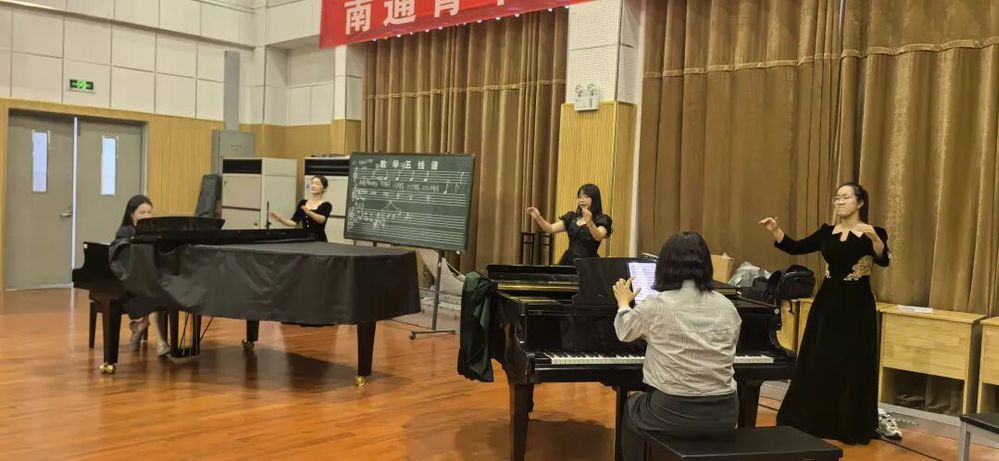 学院对此赛事高度重视,及时组建专业教师辅导团队,为每位选手设计个性化的集训方案,建立刻苦备赛、定期督查、适时调整、提高效率、后勤保障等一系列系统化备赛模式,围绕基础知识与应用、通用技能(模拟授课)、专业技能(即兴弹唱、合唱指挥、器乐、舞蹈、戏曲)等项目,开展多轮次、高强度的专项训练。定期开展观摩交流活动,适时对选手提出改进建议与要求,在实践训练的磨练中逐步提升选手参赛水平。同时,开展多次模拟比赛流程演练,帮助选手适应赛场氛围、克服紧张情绪,把控比赛节奏。