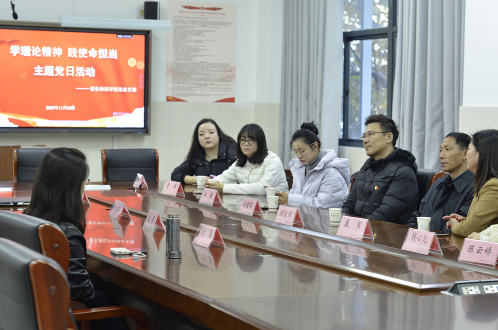 当刚劲的舞步与柔美的身段交织,当竹笛的清越与歌声的滚烫共振,一场“艺术为体、思政为魂”的主题党日活动,于11月26日在我校温情启幕。南通新区学校党支部书记、校长顾文书,党支部副书记戴寅,副校长冯建军等一行十人与我院师生齐聚一堂,以“党建美育双赋能,美美与共育新人”为主题,在校史溯源、艺术展演、深度座谈中,让红色基因与审美素养同频共振。
