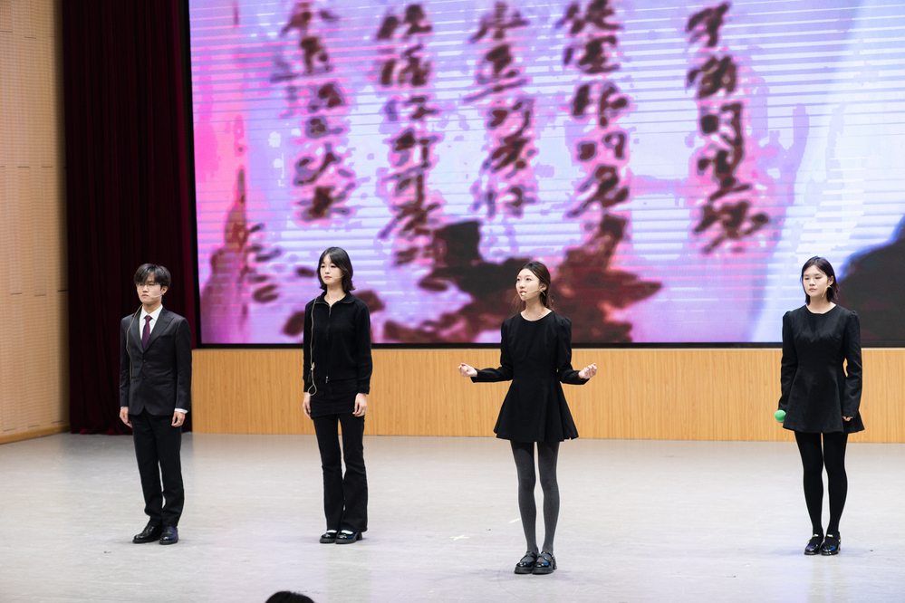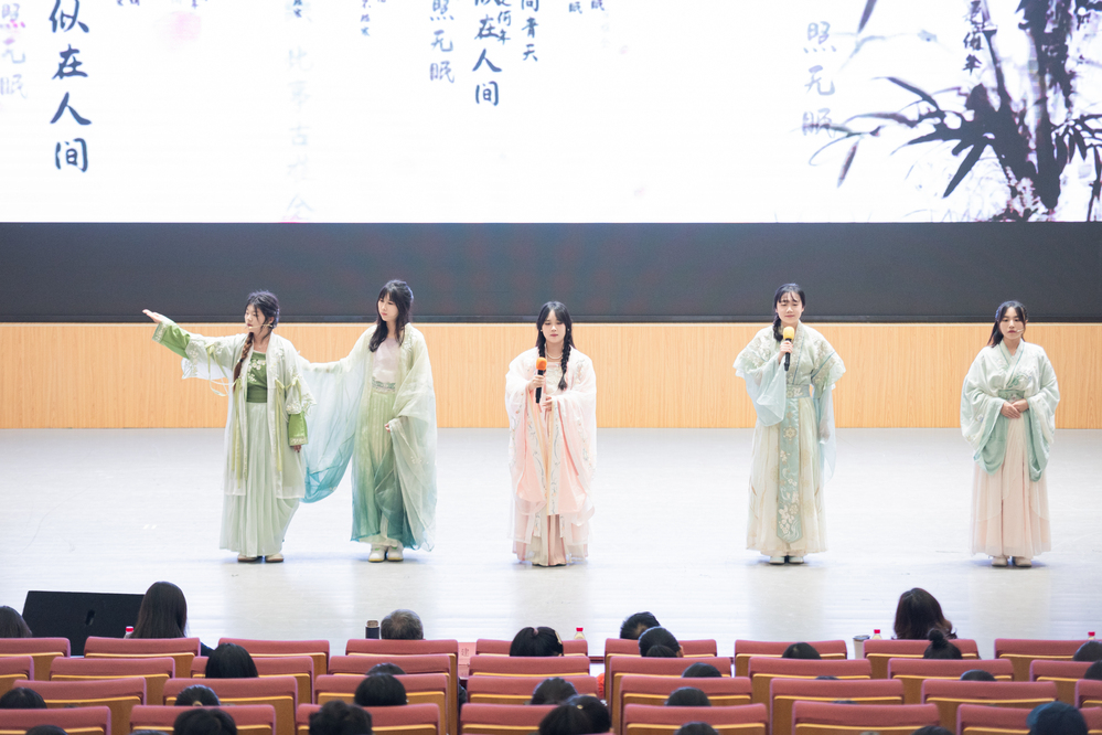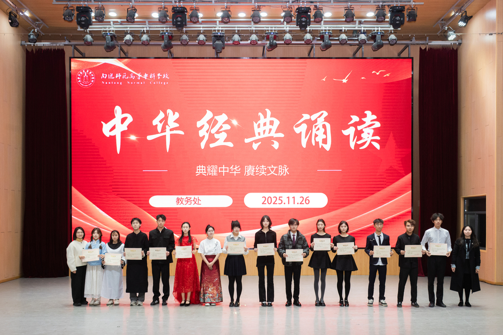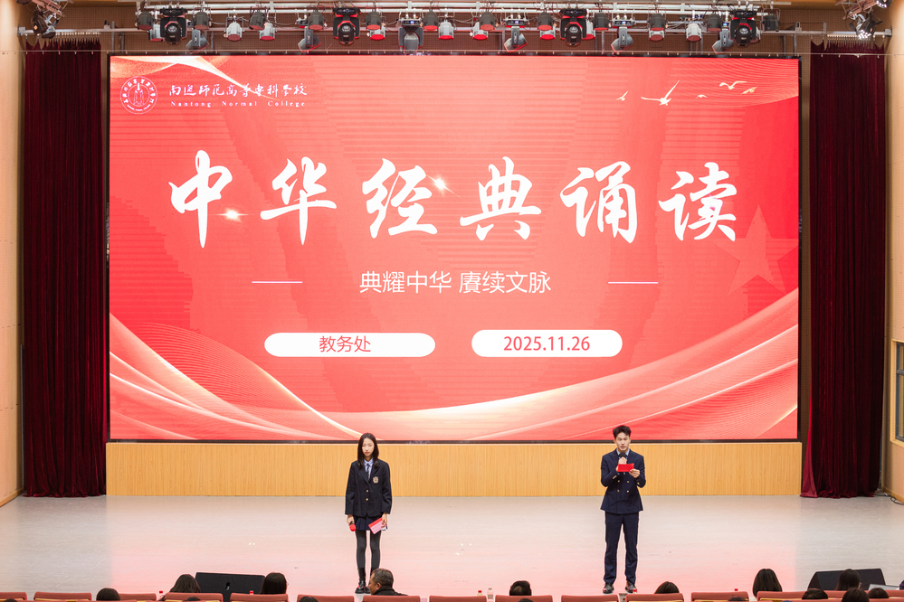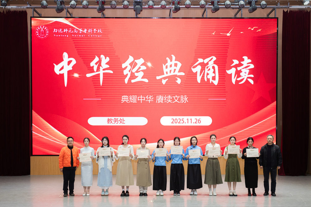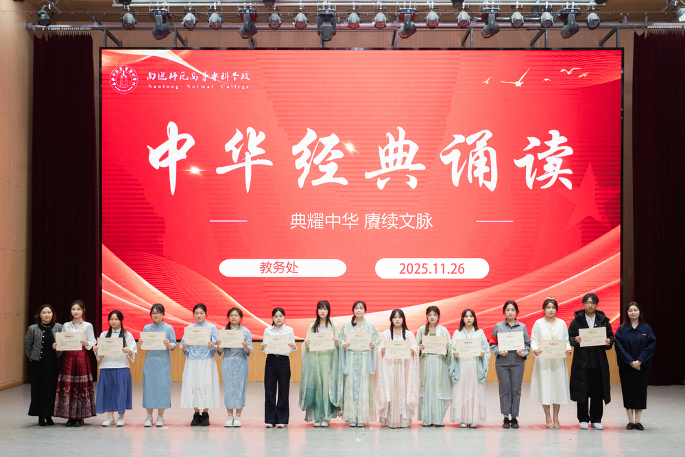11月26日下午,由教务处举办的2025年“中华经典”师生诵读比赛在开发区校区图文信息中心大报告厅举办。学校党政办、党委宣传部、教务处、学工处、团委、工会、图书馆等部门相关同志担任评委,300多名师生到场观赛。