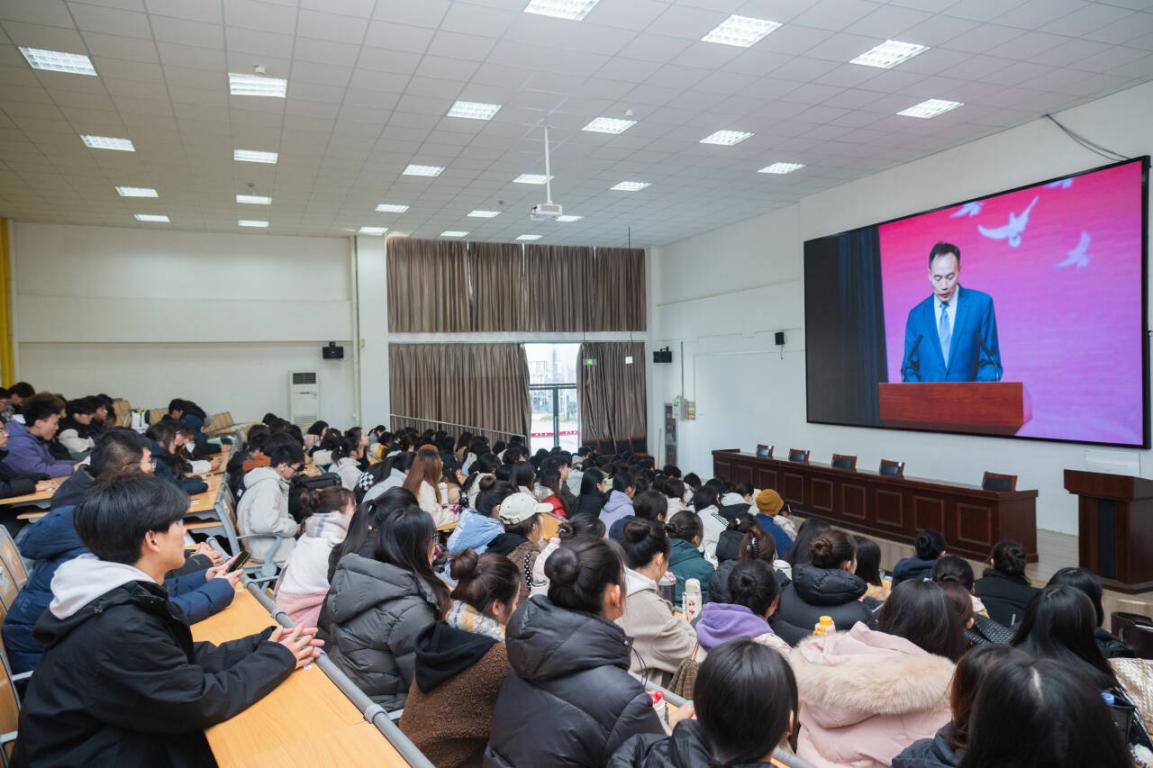 2025年12月4日是第十二个国家宪法日,为学习宣传贯彻习近平法治思想,推动宪法深入人心,12月4日上午,党委宣传部和学生工作处在开发区校区珠媚楼109阶梯教室组织开展“宪法晨读”活动。活动由学工处思政科科长陆超主持,师生代表共180余人参加了此次活动。