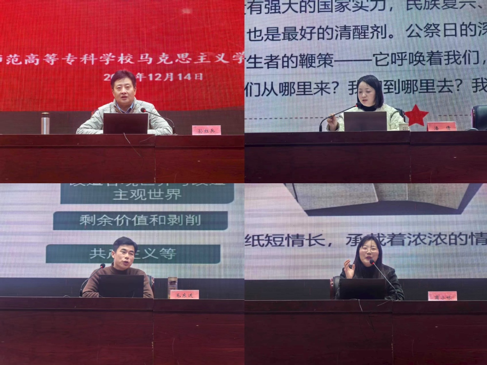 马克思主义学院院长兼党总支书记孙红兵、副院长潘倩、马克思主义理论教学部主任毛东进、党政办公室主任商小咏分别为学员讲授专题党课。