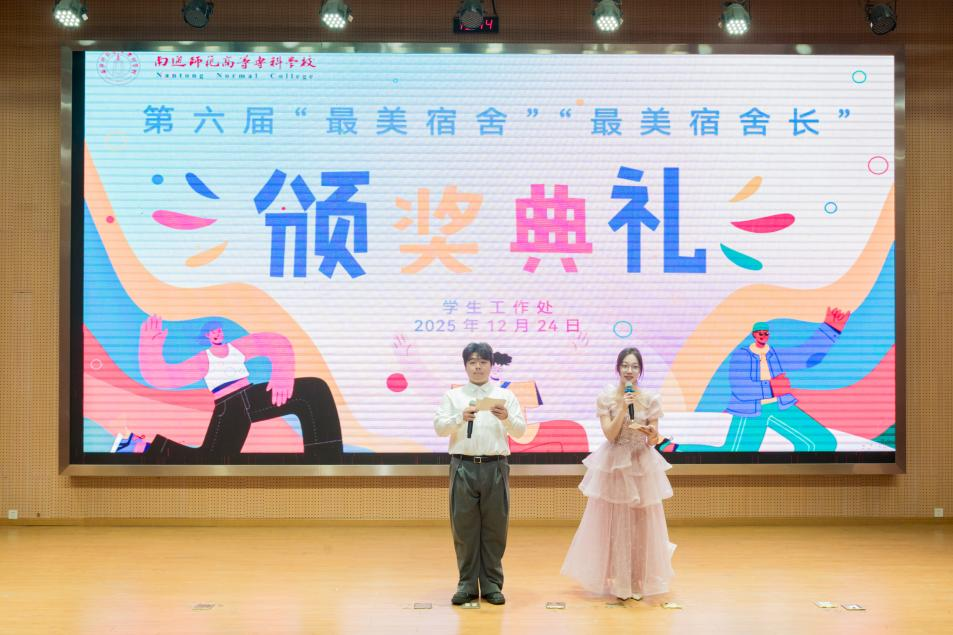 赵园园在讲话中强调,宿舍是学校育人体系的重要基石,也是舍风、学风与校风的集中体现。她充分肯定了本届评选所呈现的“多元之美”:环境之美,彰显于整洁温馨的起居空间;和谐之美,凝结于室友之间的真挚情谊与互助共进;文化之美,浸润在积极向上、独具特色的宿舍氛围中;担当之美,体现在宿舍长恪尽职守、服务同学的无私奉献里。她勉励获奖集体与个人继续发挥示范引领作用,积极营造“各美其美、美美与共”的宿舍生态,让“最美”故事持续传递,成为校园文化中一道温暖而恒久的风景。