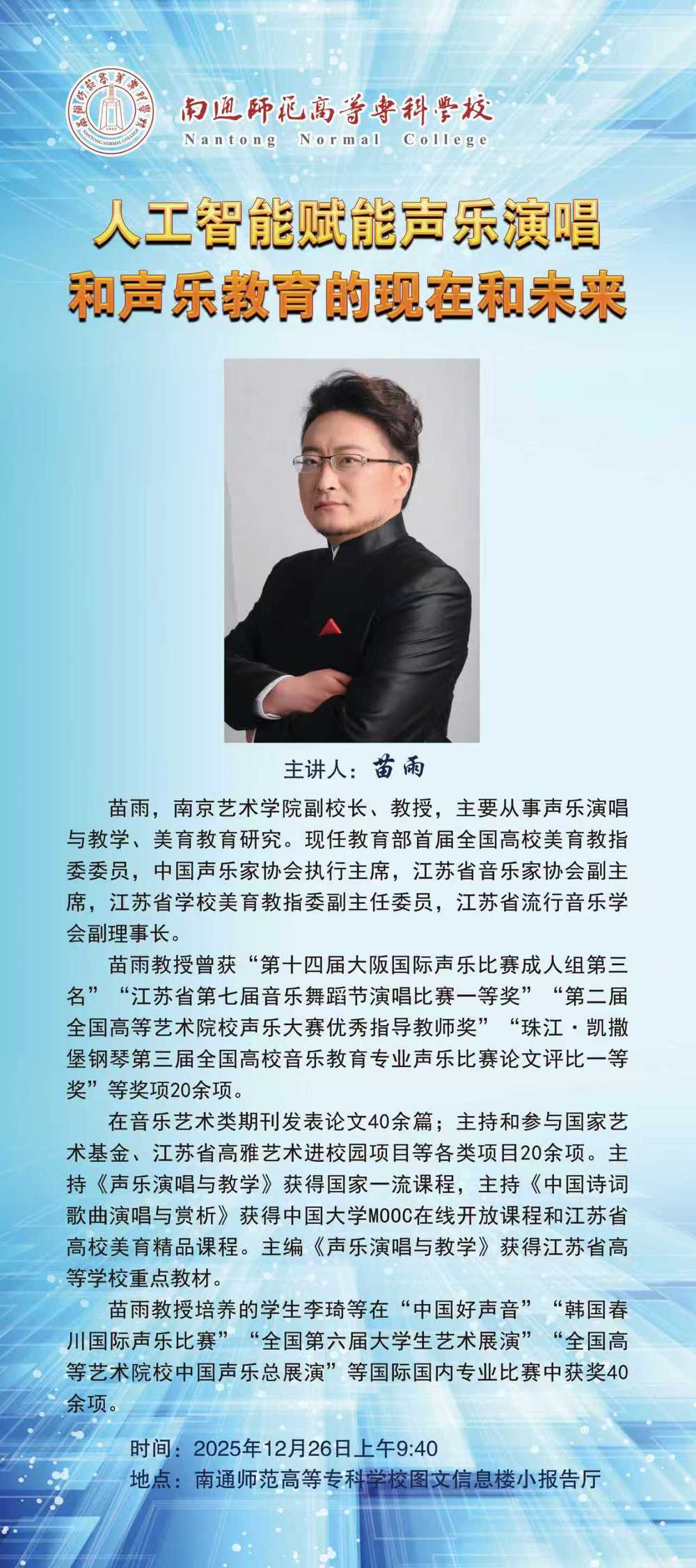 讲座:人工智能赋能声乐演唱——声乐教育的现在和未来