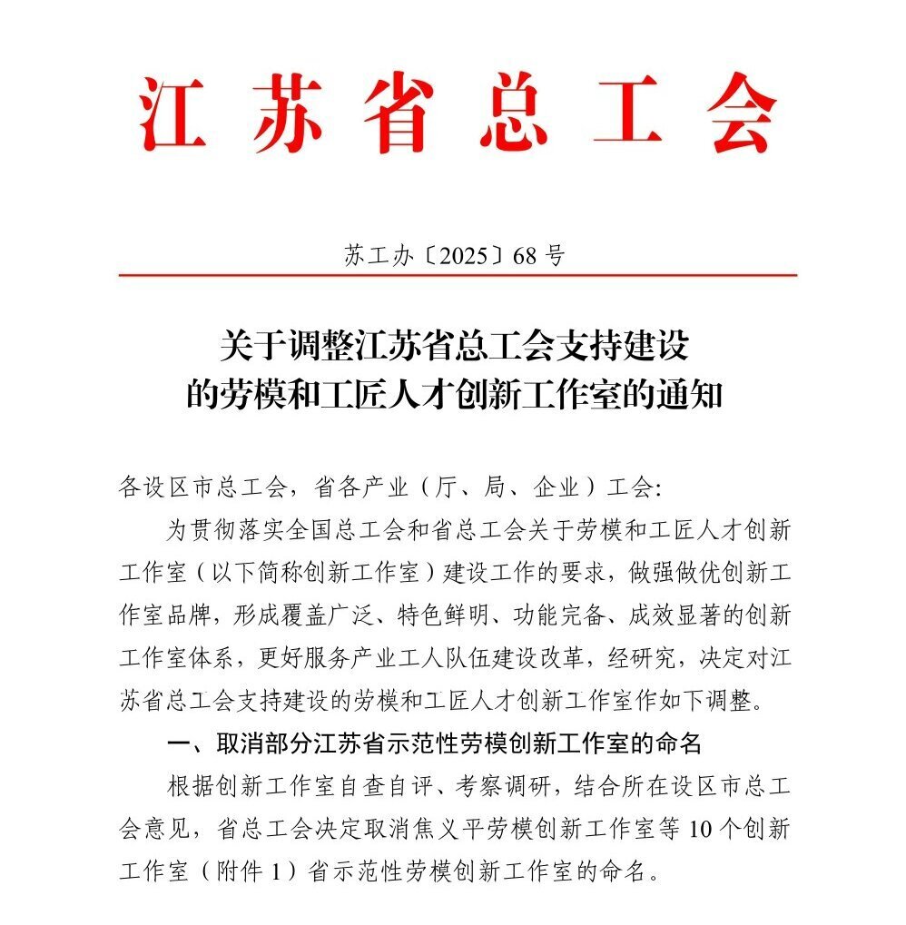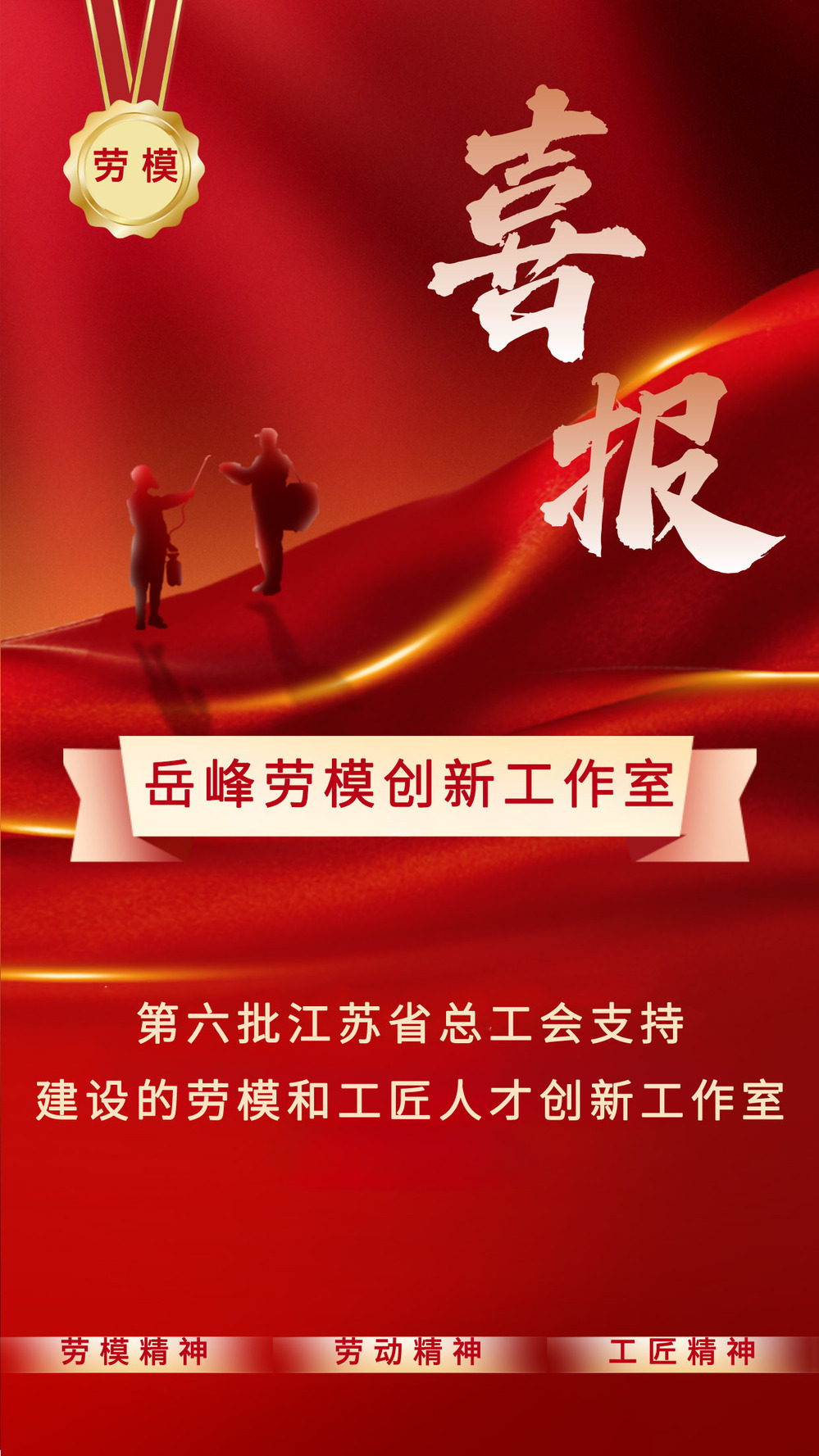 近日,根据江苏省总工会《关于调整江苏省总工会支持建设的劳模和工匠人才创新工作室的通知》,我校岳峰劳模创新工作室成功入选第批江苏省总工会支持建设的劳模和工匠人才创新工作室名单。这是我校在劳模创新平台建设上的重大突破,也是学校获批的首个省级劳模创新工作室