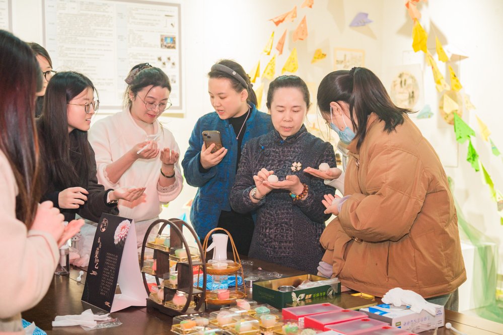 “非遗体验”环节尽显文化韵味。活动特邀南通市剪纸艺术传承人刘婧老师和非遗茶果子技艺传承师叶继红老师现场教学。老师们手把手指导大家剪刻灵动的马年剪纸,制作颜值与美味并存的茶果子艺术点心。在动手实践中,大家纷纷邂逅传统艺术的精妙魅力,沉浸式感受非遗文化的独特魅力。