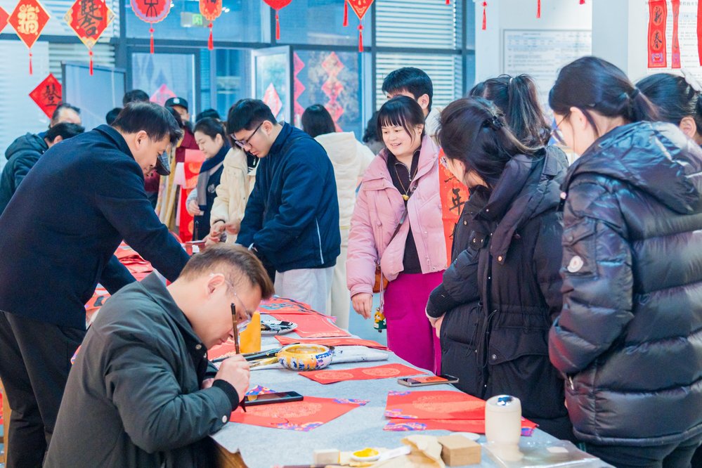 国秀楼一楼美术馆展厅化身新春文化盛宴现场,写春联、做文创、学非遗、赏佳作四大趣味环节,让全校教职工沉浸式解锁马年专属福气,在笔墨书香与动手乐趣中深切感受了传统年俗的温暖质感。