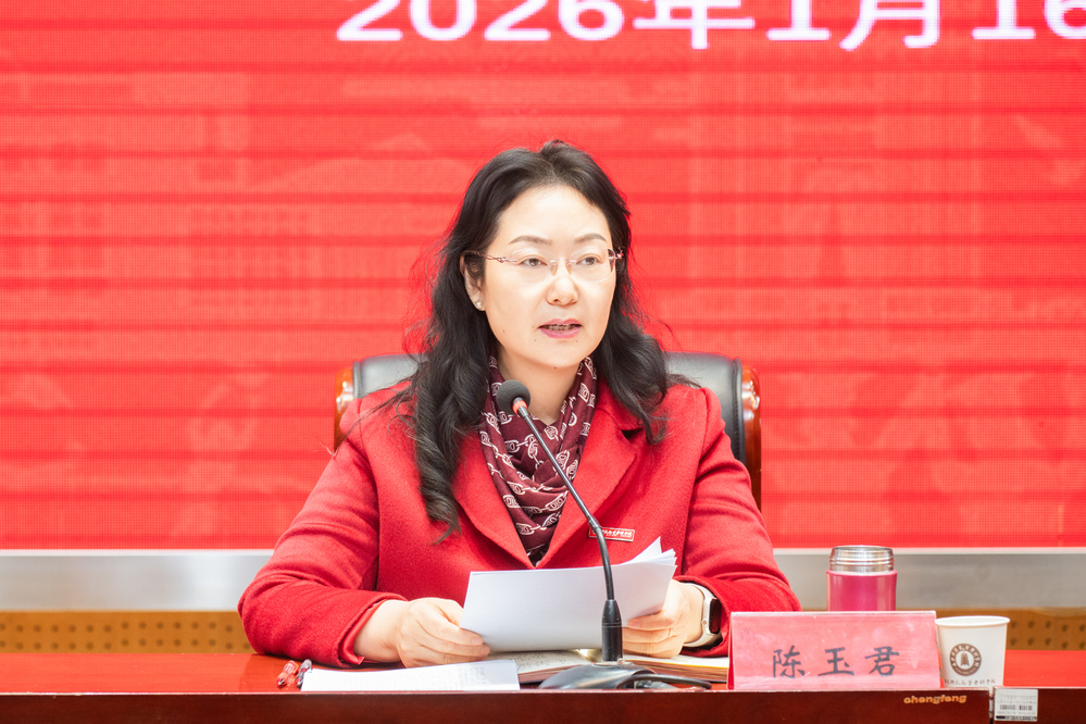 2026年1月16日下午,学校在开发区校区图文信息楼小报告厅召开全体干部会议,全面总结2025年办学成绩与经验,部署寒假重点工作,并擘画2026年高质量发展新蓝图。会议由校党委书记陈玉君主持。