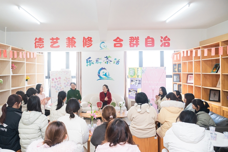 活动以轻松茶话会形式展开,围绕婚恋与成长、职场人际关系、宿舍矛盾等女生成长核心话题深入交流。副校长赵园园结合自身经历,解读学业、事业与感情的平衡之道,分享职场心得,为同学们答疑解惑;辅导员代表分享宿舍相处小故事,现场学生主动提问,师生围绕沟通包容展开互动。解锁“芳华墙”环节中,在座的领导老师对同学们提前写在便签纸上的小困惑逐一解答,并给出实用建议。交流尾声,赵园园为在场的女生送上节日寄语,勉励全体女生坚守初心、悦纳自我,在成长路上从容向阳、一路芳华。