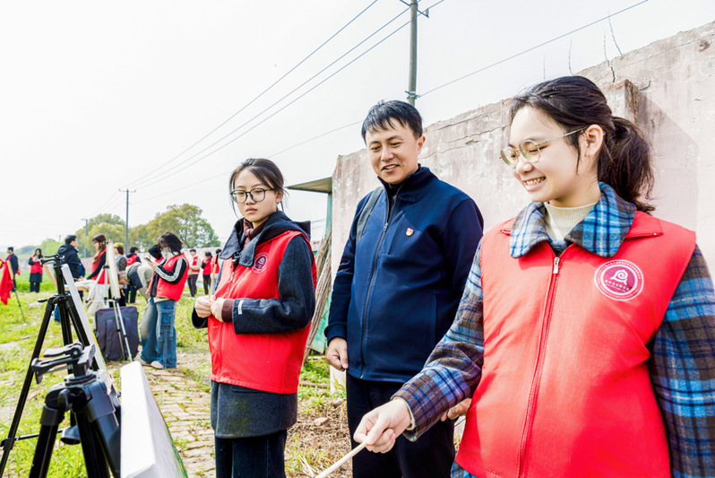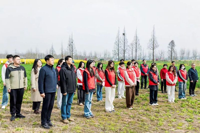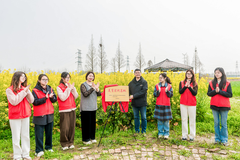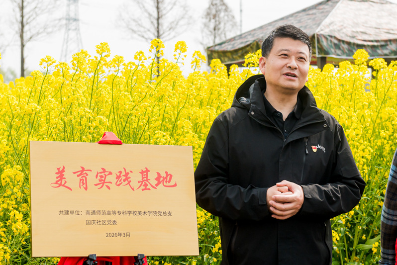 春雨初霁,惠风和畅。在首个春假的美好时光里,美院党总支书记黄斌斌、副书记许锐、张琦琰老师和高广毅老师带领10名团员齐聚天生港红色农场,与崇川区天生港镇街道国庆社区党委携手开展“红色领航·青春添彩”活动。以田埂为课堂、以实践为纽带,将思政课学习、非遗体验、美育采风与劳动实践深度融合,在乡村振兴的田野上绽放青春艺彩,让党团旗帜在春日乡间高高飘扬。