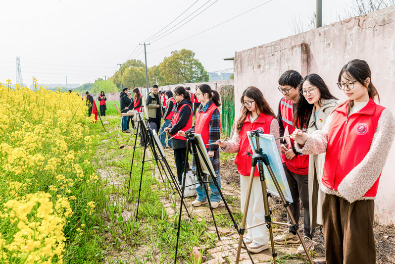 油菜花田是大自然馈赠的最美调色盘,美术学院的师生们以笔为媒、以景为卷,开启“框住春天”“花田画廊”沉浸式采风创作。师生党团员深入花田腹地,用画笔勾勒春日轮廓,用镜头定格田园风光,将乡村的自然之美、生机之美凝于笔尖、藏于镜头,让美育创作扎根乡土大地。