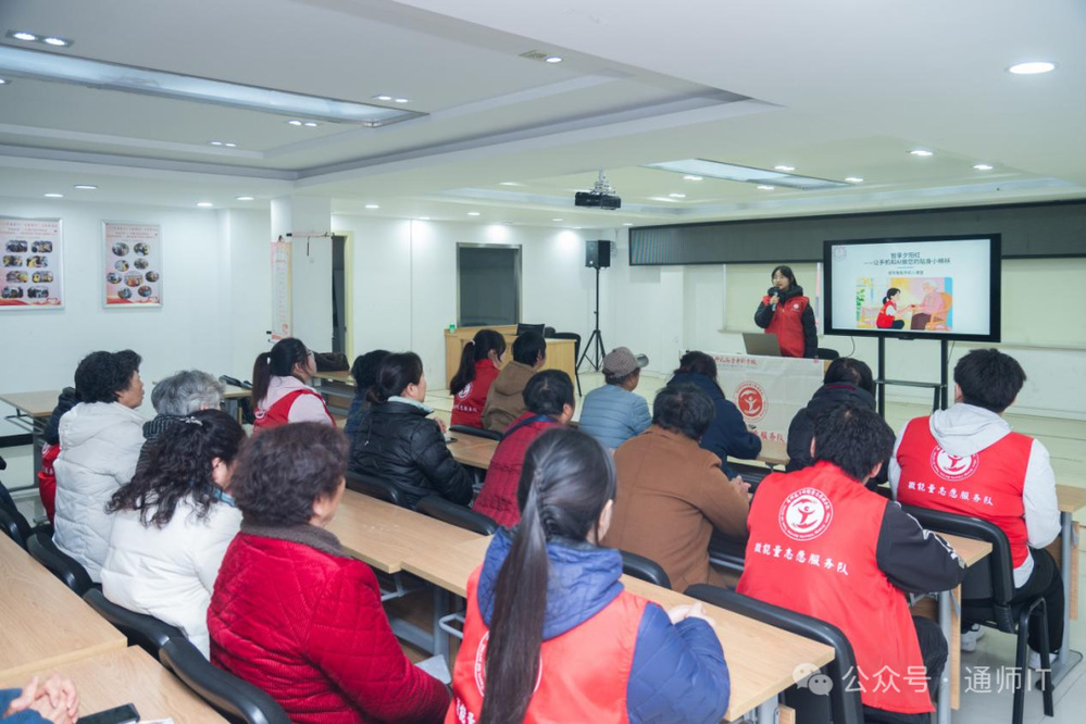 为积极响应国家关于推进数字技术适老化改造的号召,助力老年群体跨越“数字鸿沟”,共享智慧社会发展成果,3月24日下午,智能信息学院“微能量”志愿服务队一行前往南通市崇川区新桥苑社区,成功举办“智享夕阳红——让手机和AI做您的贴身小棉袄”老年人人工智能科普小课堂。本次活动得到了社区老年人的热烈欢迎与积极参与,南通日报记者亦专程到场进行采访报道。