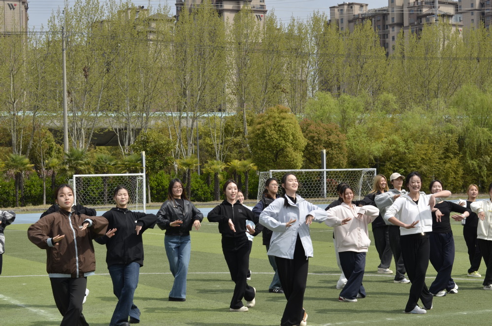 为深化艺术教学实践,拉近师生距离,丰富校园文化生活,4月8日下午,音乐舞蹈学院“舞韵芳华·师生共舞——以舞相融,艺启美好”师生舞蹈交流活动在学校操场顺利举行。学院专业舞蹈教师、舞蹈表演专业及音乐专业全体师生齐聚一堂,以舞为媒、以艺传情,共同呈现一场兼具专业性与互动性的舞蹈盛宴。