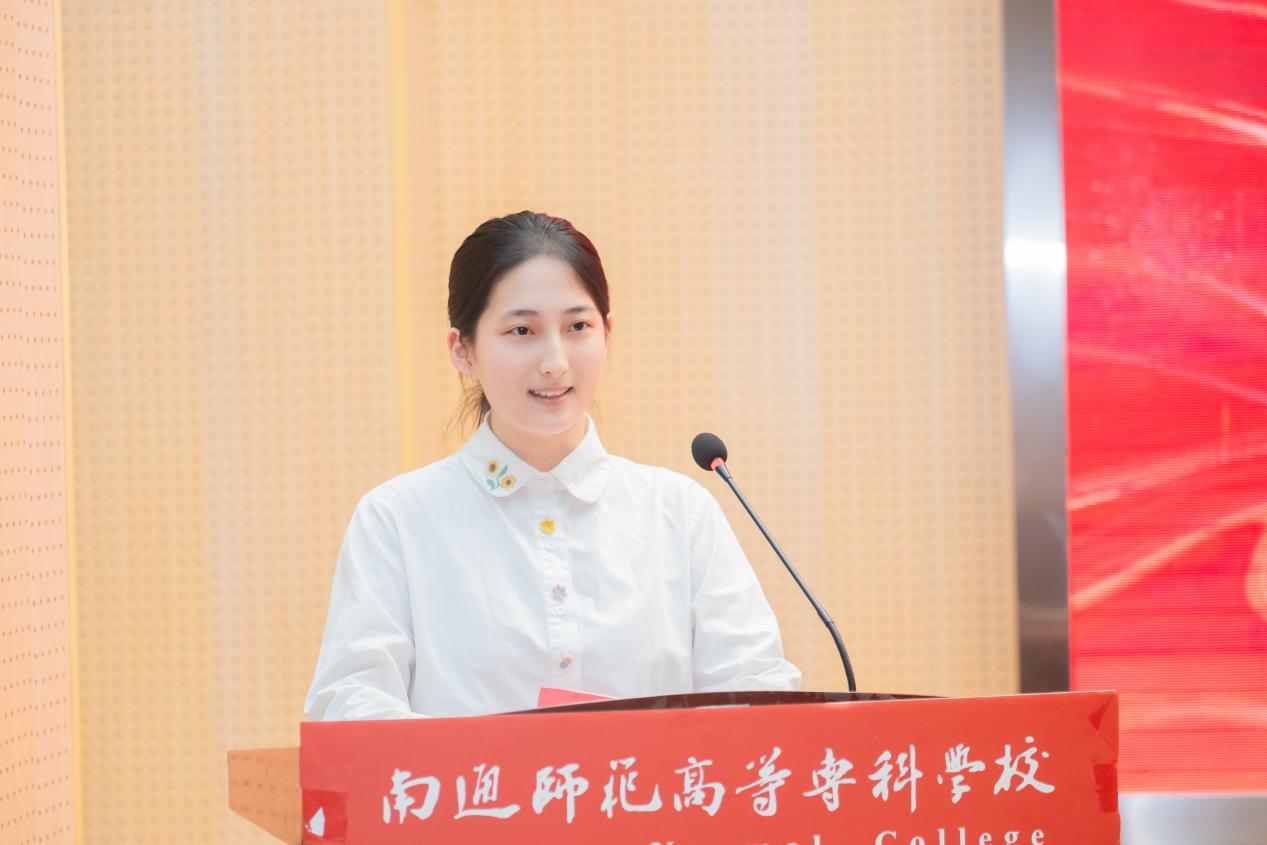 初等教育学院小学教育24(1)班丁子喻同学作为获奖代表发言。她结合自身阅读经历分享感悟:阅读会在心底悄悄埋下种子;《风会记得一朵花的香》重塑了她对教育本质的理解。她倡议同学们多走进图书馆、参与读书节活动,加入读书社团结识志同道合的书友,在书页间过有温度的诗意生活。